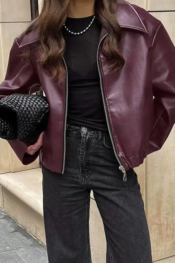 A maroon leather handbag can elevate your autumn wardrobe significantly. The rich color complements the changing leaves and adds a touch of sophistication to any outfit.
