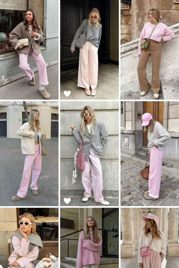 Consider a sharp charcoal gray suit or tailored trousers, beautifully softened by a millennial pink silk camisole or a delicate knit sweater. This look is ideal for the office, a sophisticated dinner, or a stylish casual outing. You could also use pink as the accent color, with a millennial pink scarf or bag adding a pop of color to an otherwise monochrome gray outfit. This pairing is especially effective when combined with silver accessories or sleek white sneakers for a cool, urban vibe. It effortlessly blends professional polish with a hint of gentle charm.