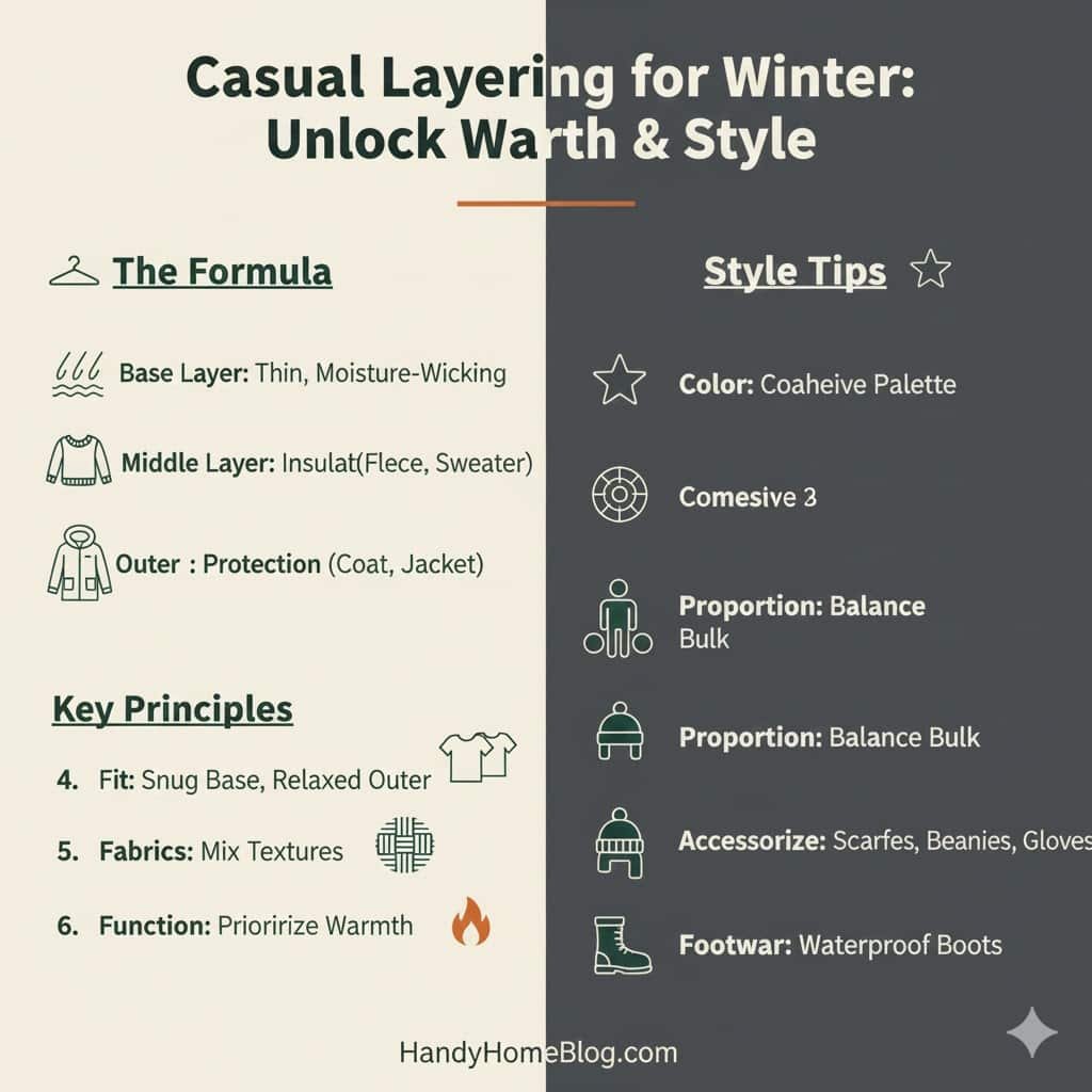 Layering isn’t just about warmth; it’s about looking good while staying cozy. Here are some tips to elevate your casual winter layering game.
